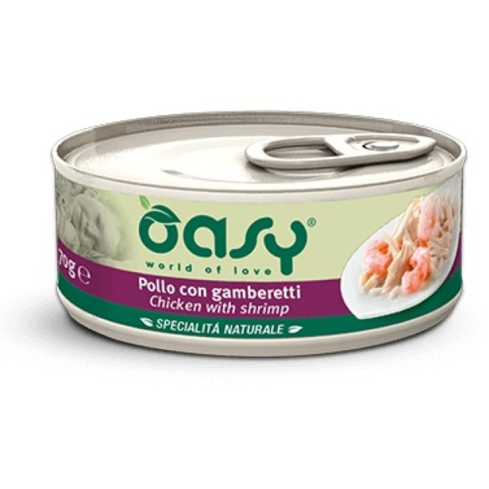 COMPOSIZIONE: Pollo 45,5%, gamberetti 4,5%, riso 1%.