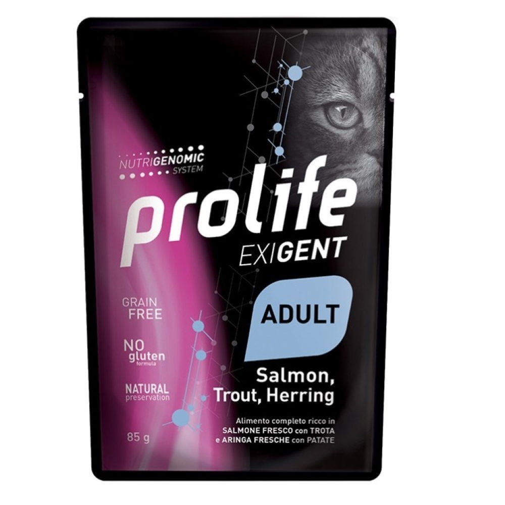 COMPOSIZIONE: Salmone fresco 58%, Trota fresca 5%, Aringa fresca 5%, Patate 4%, Alltech® Nutrigenomic System 1,2%, Cellulosa 1%, Sostanze minerali, Olio di salmone 0,2%, Fruttoligosaccaridi