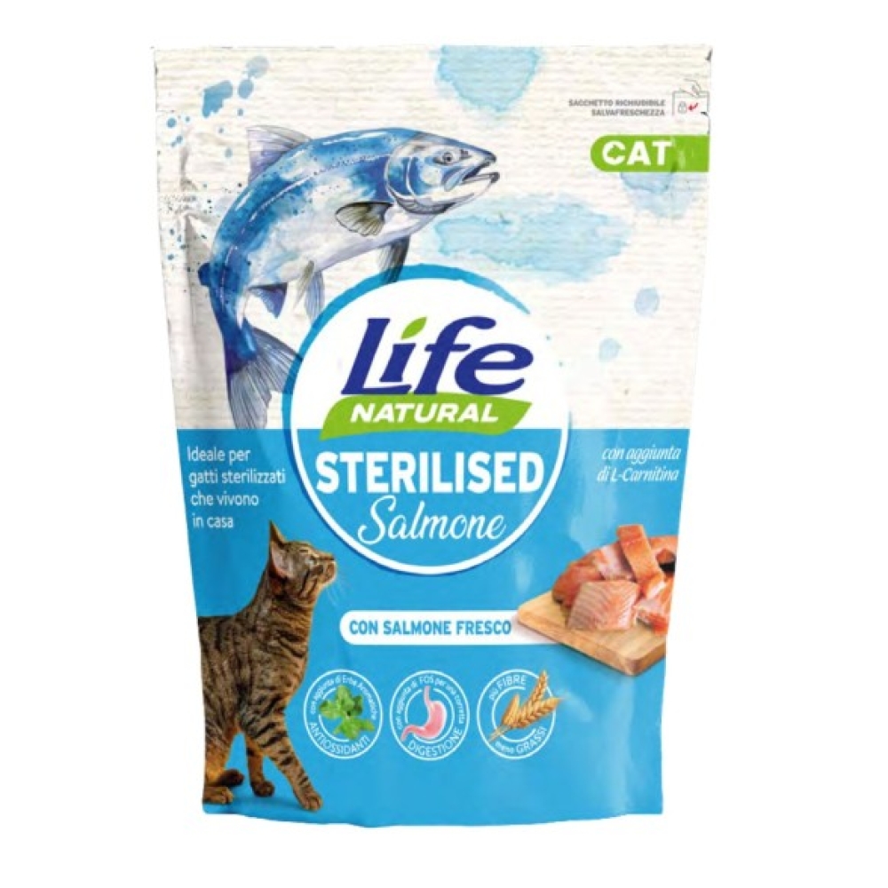 COMPOSIZIONE: Salmone (salmone disidratato 17%, salmone fresco* 10%), Riso*, Granturco*, Proteine di maiale disidratate, Glutine di granturco, Grasso di pollo, Polpa di barbabietola essiccata, Lignocellulosa, Proteine animali idrolizzate, Minerali, Lieviti inattivati, Inulina di cicoria – fonte di FOS 0,3%, Prodotti del lievito – fonte di MOS 0,2%, Prodotti ottenuti dalla trasformazione di erbe (rosmarino, curcuma, agrumi) 0,05%, Yucca Schidi gera (250 mg/kg).