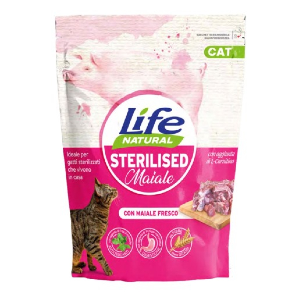 COMPOSIZIONE: Maiale (maiale disidratato 24%, maiale fresco* 10%, prosciutto disidratato 8%), Riso*, Gran turco*, Glutine di granturco, Grasso di pollo, Lignocellulosa, Proteine animali idrolizzate, Polpa di barbabietola essiccata, Lieviti inattivati, Minerali, Inulina di cicoria – fonte di FOS 0,3%, Prodotti del lievito – fonte di MOS 0,2%, Prodotti ottenuti dalla trasformazione di erbe (rosmarino, curcuma, agrumi) 0,05%, Yucca Schidigera (250 mg/kg).
